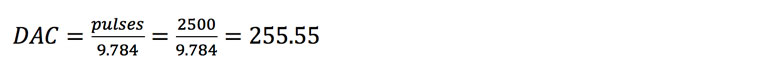 例如,如果在TIMER1中獲得2500個脈沖,則可以通過將讀取的脈沖除以我們先前發(fā)現(xiàn)的常數(shù)9.784來獲得DAC的值: