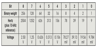3.該表顯示了刻度2的頻率到電壓的轉(zhuǎn)換。